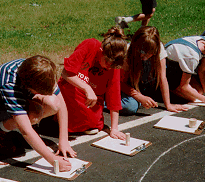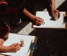 Outside, find a place where there is space to spread out clipboards and people without overlapping shadows. It may be better to do this closer to mid-day when the shadows are shorter. Have everyone place their test objects on the paper.