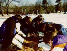 When we reach the boards, carefully slide the thermometers into the little mouths and record the temperature. If they are not the same temperature initially, ask the students if this is a problem. Do we see anywhere in the area where we could put the boards and thermometers so that we could reach the same temperature? The shade is a good place.