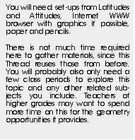 Find those places on the world that we looked at in Latitudes and Attitudes. Check to see how many of those have live camera Web sites that you can find. Ask the class: