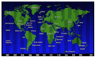 Students should already understand that different locations on the globe experience day and night at different times. Even so, the whole notion of time zones may seem a bit mysterious at first glance. Can we find the local times for our relatives around the country right now? What about for areas in the news? Which city on the Earth will yell, "Happy new year!" first? Can students begin to think of locations in terms of both time zones and longitude lines?