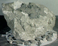 The lightest parts of the moon are called the highlands, as they are above the low basins of the crater fields and are mostly the remains of the material blasted out and upward after the explosions. Rocks collected from the highlands are the oldest rocks on the moon, as they are the remains of the first parts of the moon's crust that cooled 4.5 billion years ago. The whiteness of the rock is due to the fact that the rock is mostly anorthosite, a type of plagioclase feldspar. When broken, the feldspar crystals are ripped from their nice geometric ordering inside of the rock, causing more crystal surfaces to be exposed. The more surfaces, the more places where light can reflect; thus, these broken rocks look very bright.