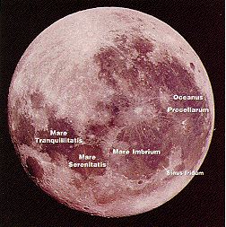 The craters are indeed the sites of tremendous explosions on the surface of an object. Craters on the moon range from about 700 mile wide basins to microscopic impacts on dust grains. The majority of craters were formed by asteroids and meteoroids striking the moon's surface. The Earth had just as many craters billions of years ago but our planet developed an atmosphere, creating rain, wind and weather conditions which have wiped out most of the craters. The moon has no atmosphere and no weather so theoretically, craters, rocks, and soil remain the same over billions of years. However, since the majority of impacts occurring on the moon's surface now are from micrometeorites, the "weathering" which occurs is due to the constant pummeling of these tiny impacts. The largest impacts on the moon were around 3.9 billion years ago. The forces of these explosions were strong enough to crack the fragile young moon's crust, allowing the (then) liquid mantle of the moon to seep into the lowlands the crater basins made and cool there into basalt rock. (The dark basalt is similar to the basalt found on the Earth, as we discovered after astronauts visiting these areas brought bits of them back.) These huge, submerged craters are called mare, the Latin word for seas, due to the fact that to the unaided eye, these dark and flat appearing basins look like large bodies of water. Galileo was the first to turn his telescope to the moon and notice that the mare were not smooth, but were cratered like the rest of the surface.
